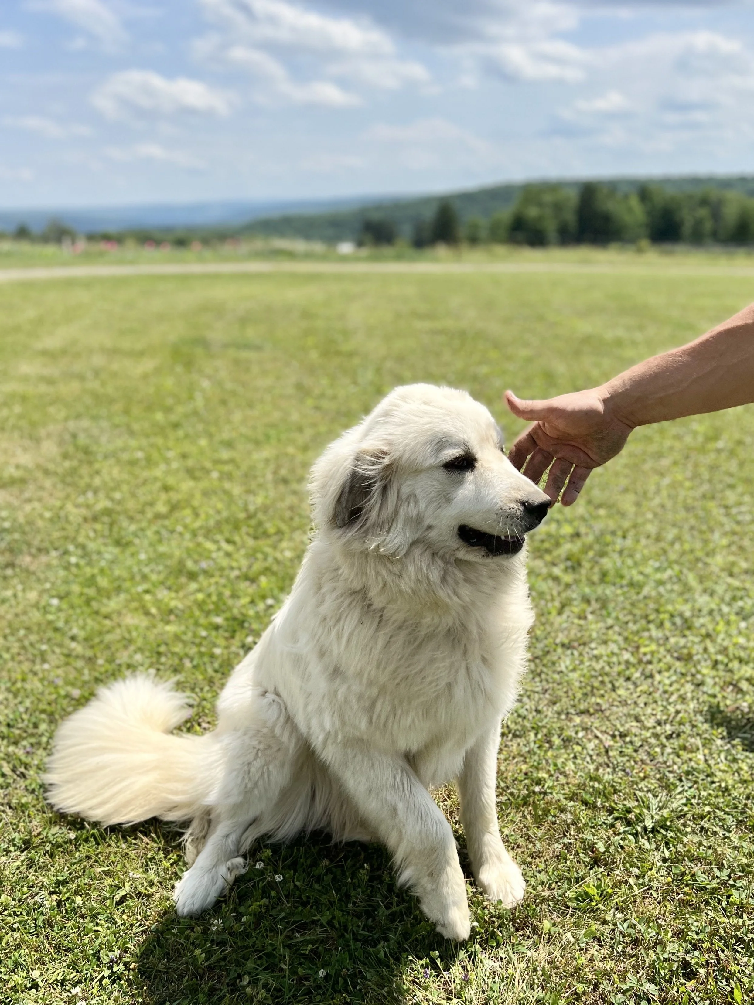 Evie is the opitome of a perfect Great Pyrenees! She is protecting and cautious, loving and watchful. She sits and watches as anything approaches our home and farm and expects the best and is watchful for the worst.