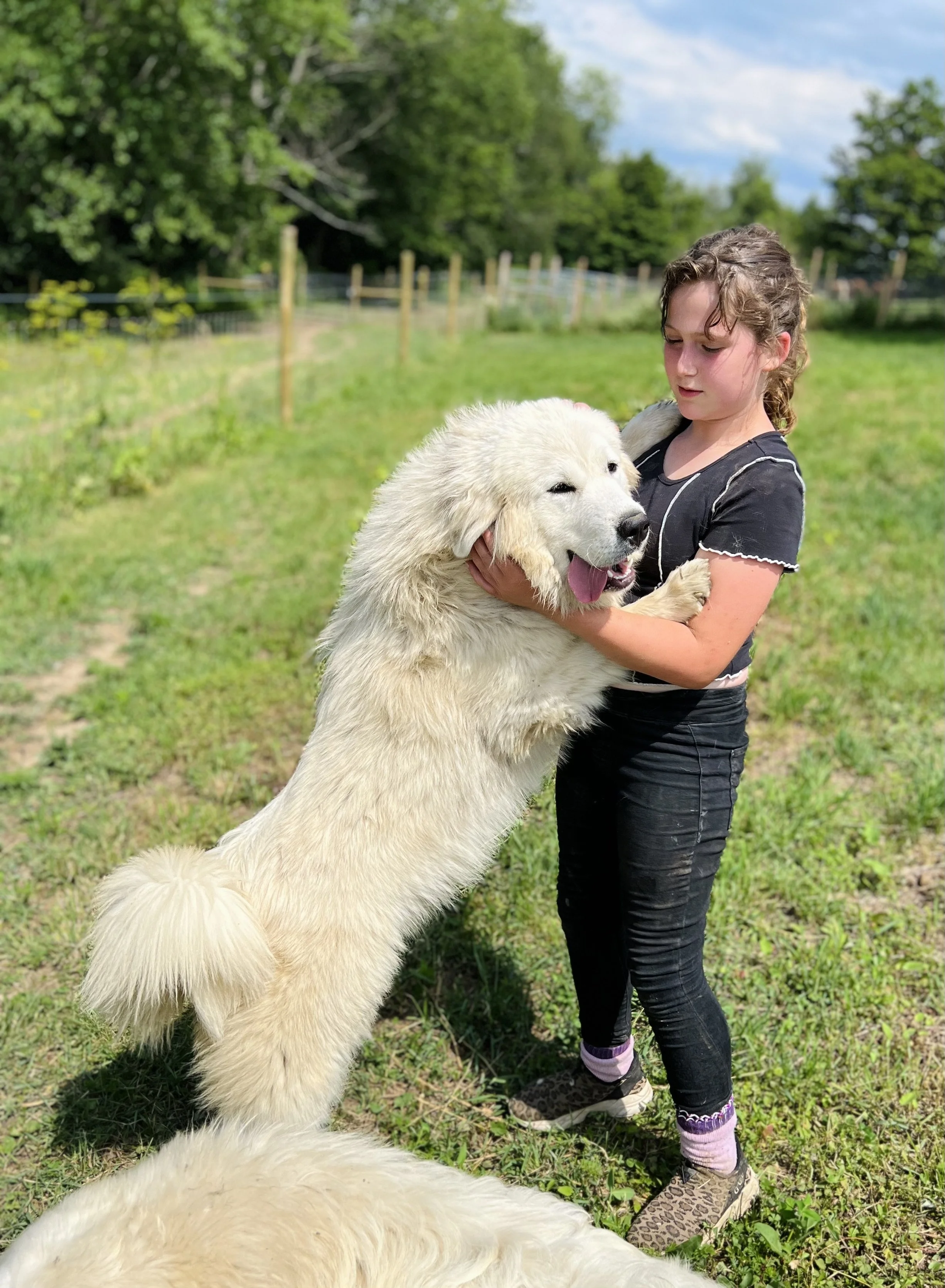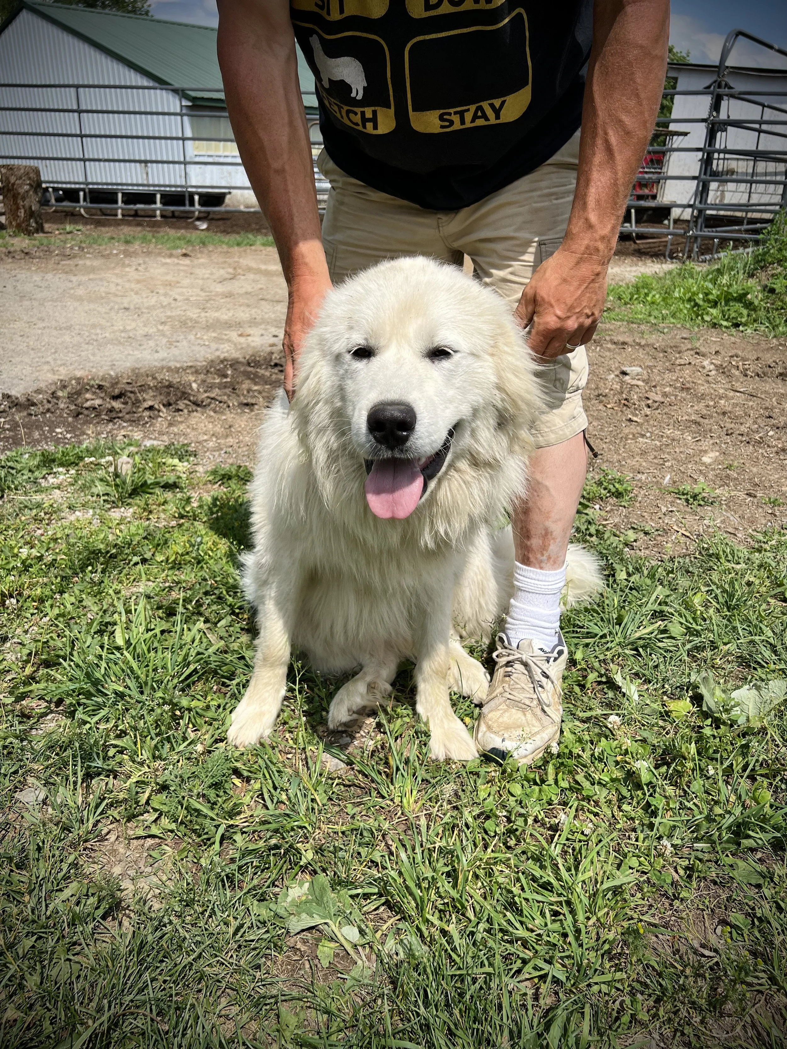 Zoe Zoe is a sweet pyr always ready to give you a hug or keep a watchful eye on all of our livestock. She’s a super sweetheart!